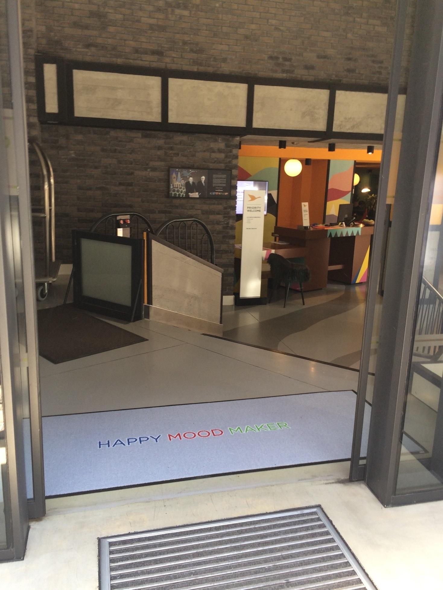 Otelin əsas girişində Emco Outdoor markalı ayaqaltı xalça quraşdırılıb.